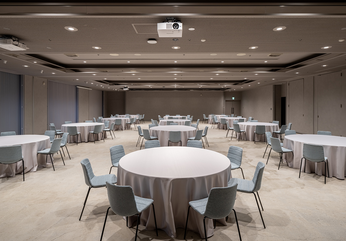 ホテルの全面改修にあたり、外壁の補修をはじめ、客室を含む全フロアの内装解体や大部分の設備を更新したほか、2階部分の大宴会場・会議室・ロビー・トイレの内装工事を淺沼組が担当した。建設発生土を再資源化した材料を用いた「ソイル左官」などが採用され、素材の選定と施工方法の工夫を通じて環境負荷の低減を図っている。