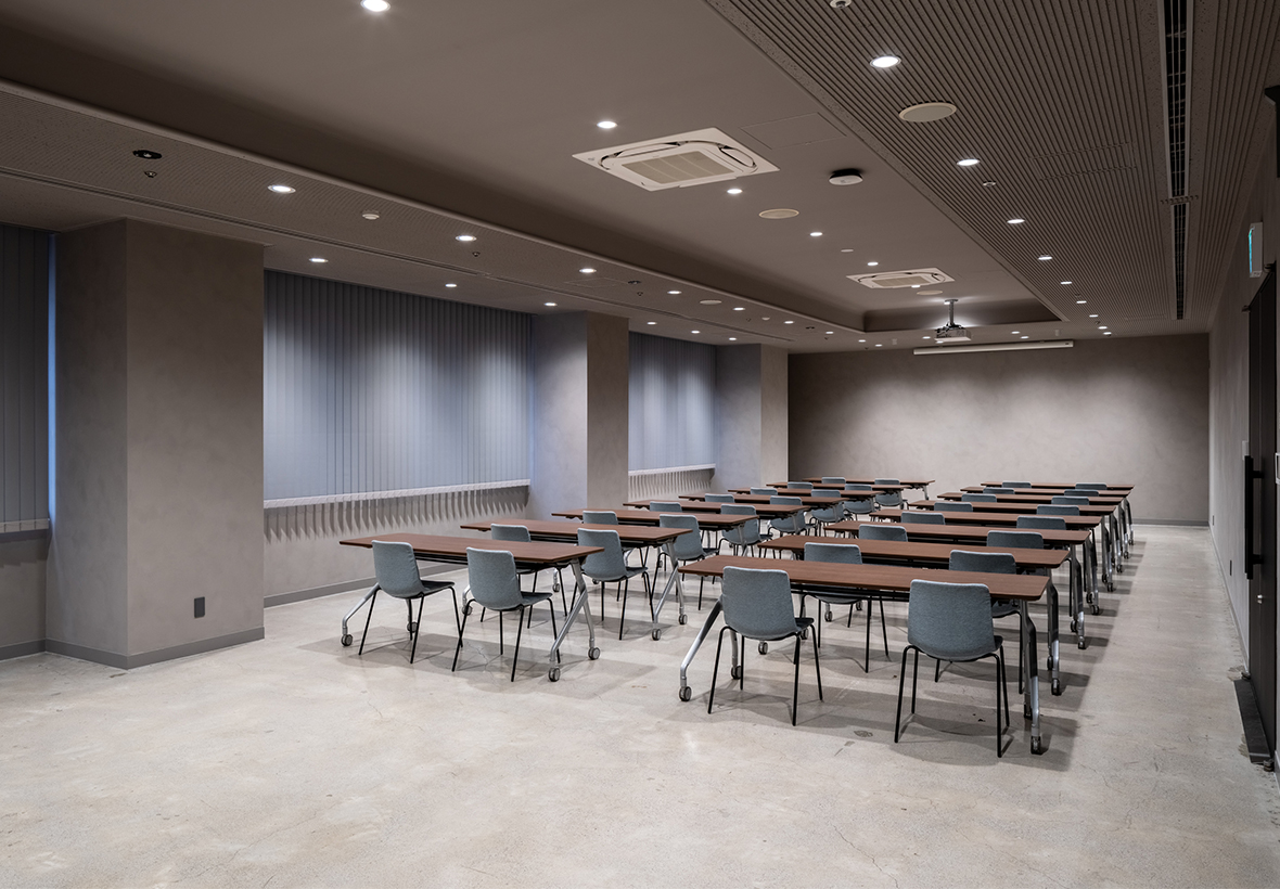 宇都宮駅前に建つ1987年竣工の旧チサンホテル宇都宮の建物全体を改修し、ライフスタイルホテル「THE KNOT UTSUNOMIYA」として再生したリニューアルプロジェクトである。淺沼組は、外壁タイルの全面的な補修・美装を行い、客室を含む全フロアで内装解体と設備更新を実施。さらに、関係者との対話を重ねながら、2階の大宴会場・会議室・ロビー(チェックインカウンター)・トイレにおいて、環境配慮を意識した内装仕上げとして「ソイル左官」を提案し、導入に至った。ソイル左官とは、ドイツ製の天然塗料「ソイルペイント」に、関東圏の建設発生土を再資源化した土と砂を混ぜた材料を用いた左官仕上げのこと。配合を調整し、ダークグレーを基調とした品のある落ち着いたトーンに仕上げている。また共用部のトイレでは、既存タイルを撤去せずに目地をモルタルで埋め、その上からソイル左官を施すことで、廃材の発生を抑制した。あわせて建具には環境配慮型の化粧シートを選定するなど、各部位において素材と施工の両面から環境負荷の低減に取り組んでいる。商業施設においては店舗内装工事を別施工とすることも多いが、本件では一般的な工事区分にとらわれず、内装仕上げの一部一部にも踏み込んだ提案を行い、素材の選定や施工の工夫を通じて環境配慮の考え方を具体的に反映した点が大きな特徴となっている。淺沼組は、どの素材を選び、どのような施工方法を採用するのか、またそれがCO2の発生や廃棄物の抑制につながり、人が日常的に触れる場所をどのようにつくるのかという視点を重視している。そうした姿勢の積み重ねが、環境配慮型の建設のあり方へとつながっていく。